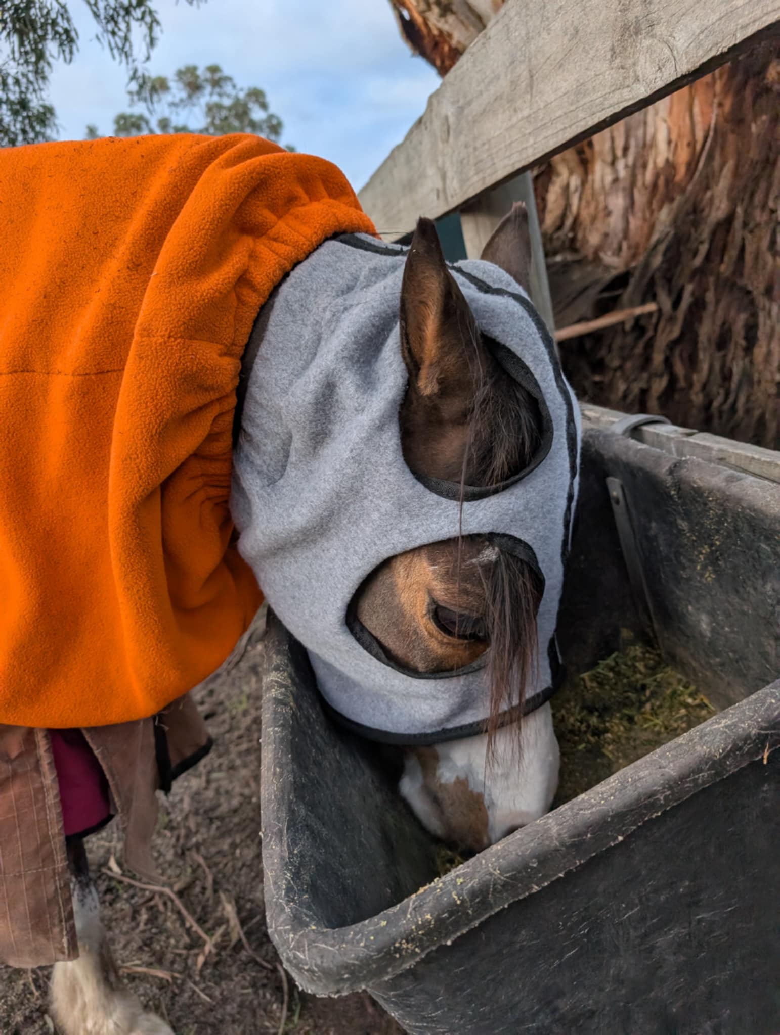 Need our horses head covered but concerned about puting a full hood onto them for fear of it pulling over their face or pulling into the horse's eyes..