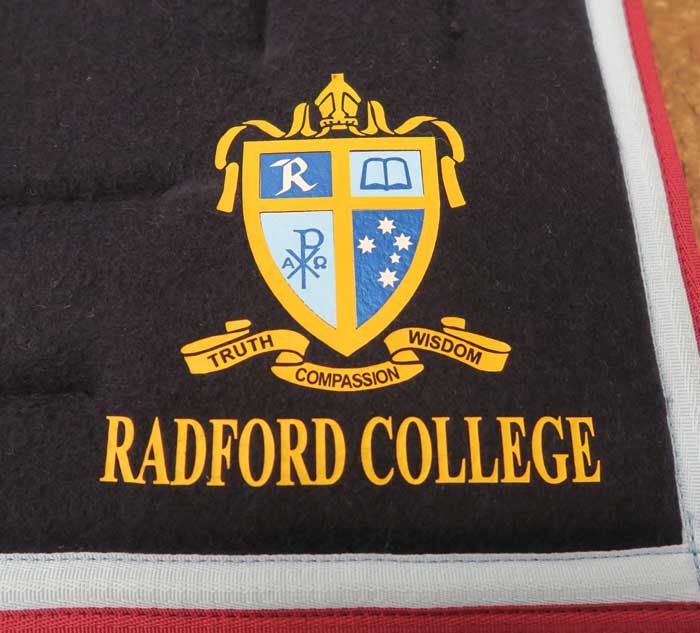 We also have an excellent embroidery service which offers your choice of fonts and colours to compliment your rugs, logos are also available but may incur a set up fee, please contact us for a quotation.