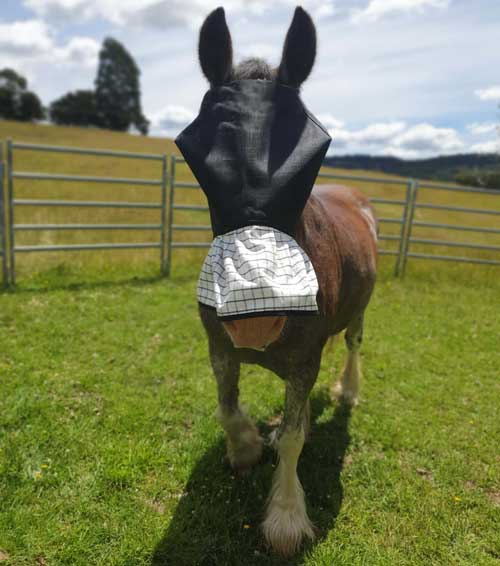 The fly mask is also available with a nose protector in either mesh or cotton, or our new sunshade