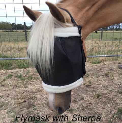 Our fly masks are also available with protective sherpa, standard nose protector in either mesh or cotton. Additonal customisations include choice of trim colour and/or horses name/digital lettering