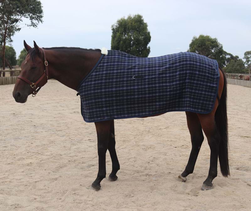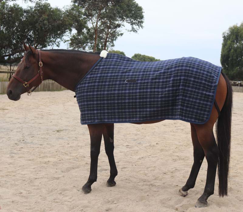 We call this the Economy Wool Under Rug for a very good reason. It is thick, warm and cosy being luxurious 80% Kersey wool, it is comfortable for your horse and your pocket. Warm on the cold days but because wool breathes so well this natural product will not overheat your horse if the weather warms up a little. It can also make an ideal cooler rug because wool is temperate and has the ability to be hold its own weight in moisture without feeling damp. This rug has a reinforced neck to alleviate any stretching. Genuine lambswool at wither. Light and easy quick release fittings on nylon leg straps reinforced to rug, Neck rug dees. The overall drop is shorter than your canvas rugs so you don't get any annoying bits hanging out to get wet and dirty.